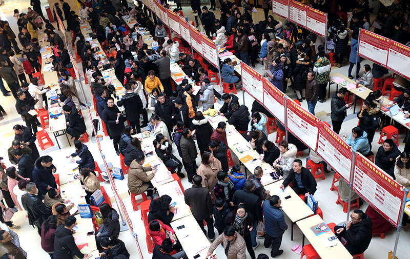 招聘會現(xiàn)場人潮涌動,整個德潤中庭擠滿了求職者,“五險一金”、“帶薪休假”、“年薪10萬”等優(yōu)越條件吸引著求職者的目光,在展位前駐足攀談,希望能找到適合自己的工作。一份份精心準備的簡歷,寄托著夢想和未來。